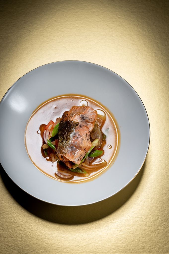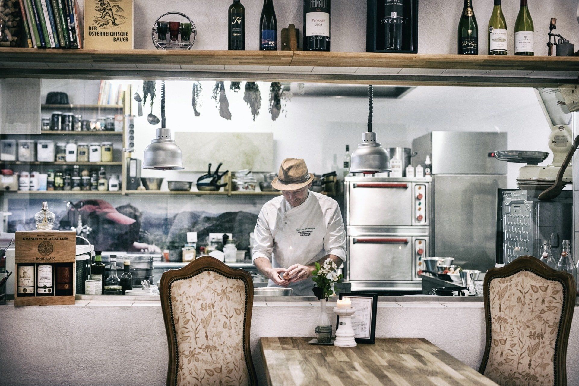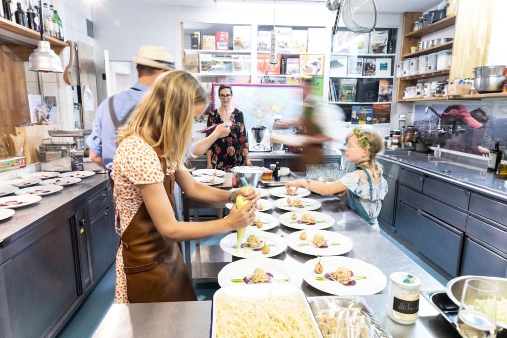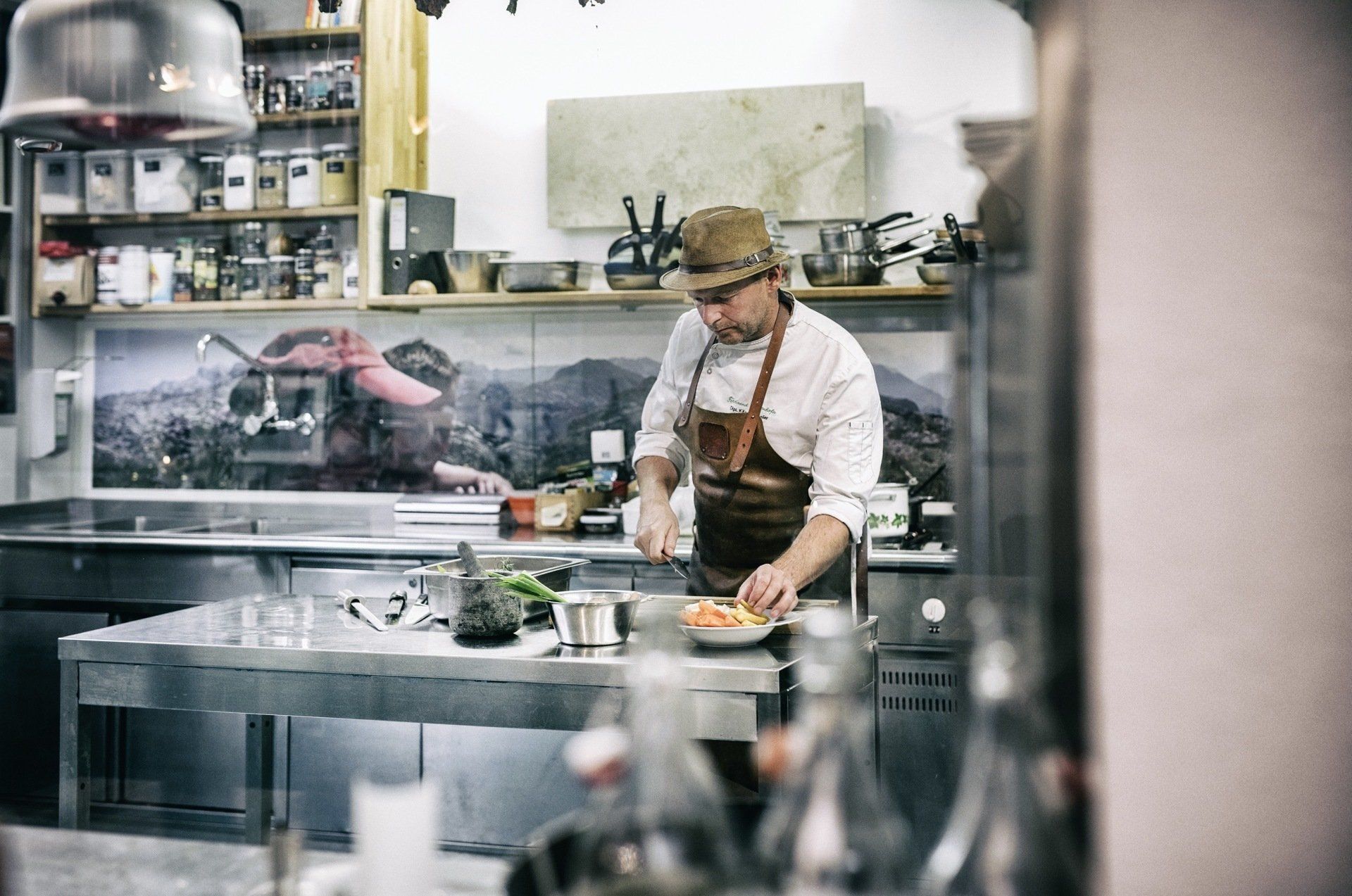 ...lassen 1-3 Personen pro Gang in der Schauküche aktiv werden. Die übrigen Gäste schauen dem bunten Treiben vom Restaurant aus zu.
